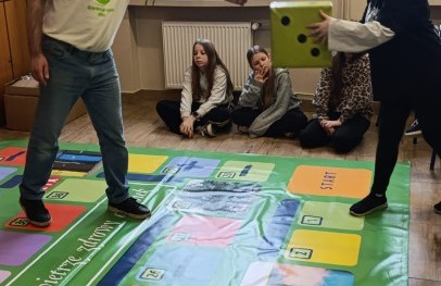 Konkurs wiedzy ekologicznej dla klas 1-3 zorganizowany przez uczniów klasy 7-8 z wykorzystaniem gier edukacyjnych otrzymanych wnagrodę za zaangażowani...
