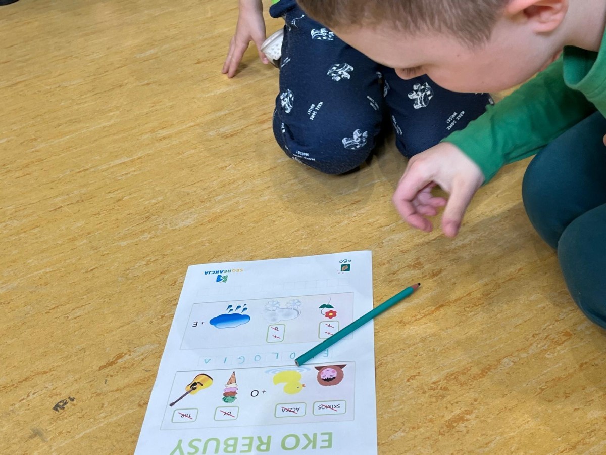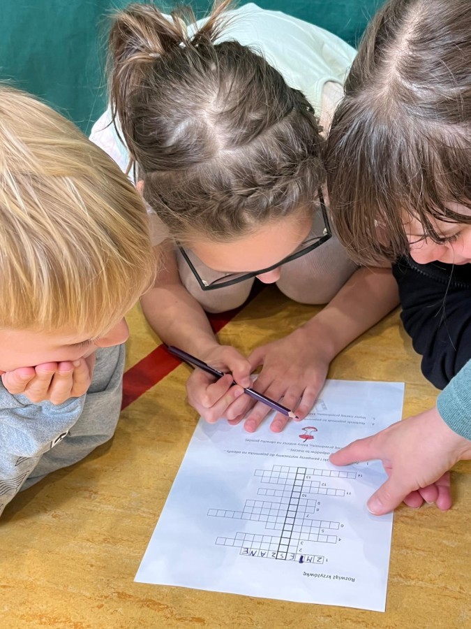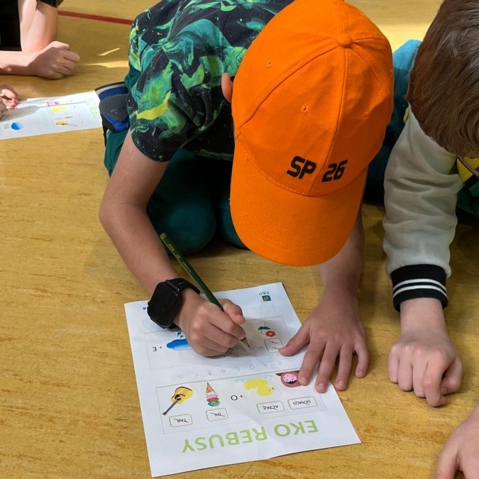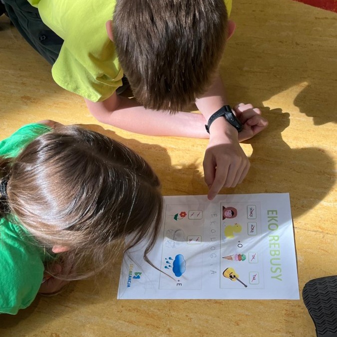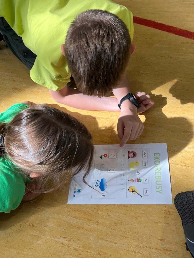 Przygotowano stanowiska z amigłówkami, rebusami i krzyżówkami dotyczącymi segregacji odpadów i zasad recyklingu.