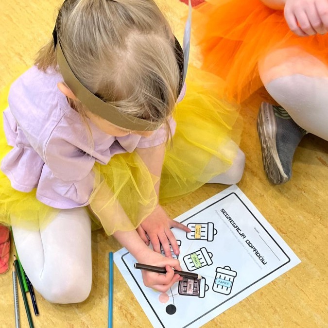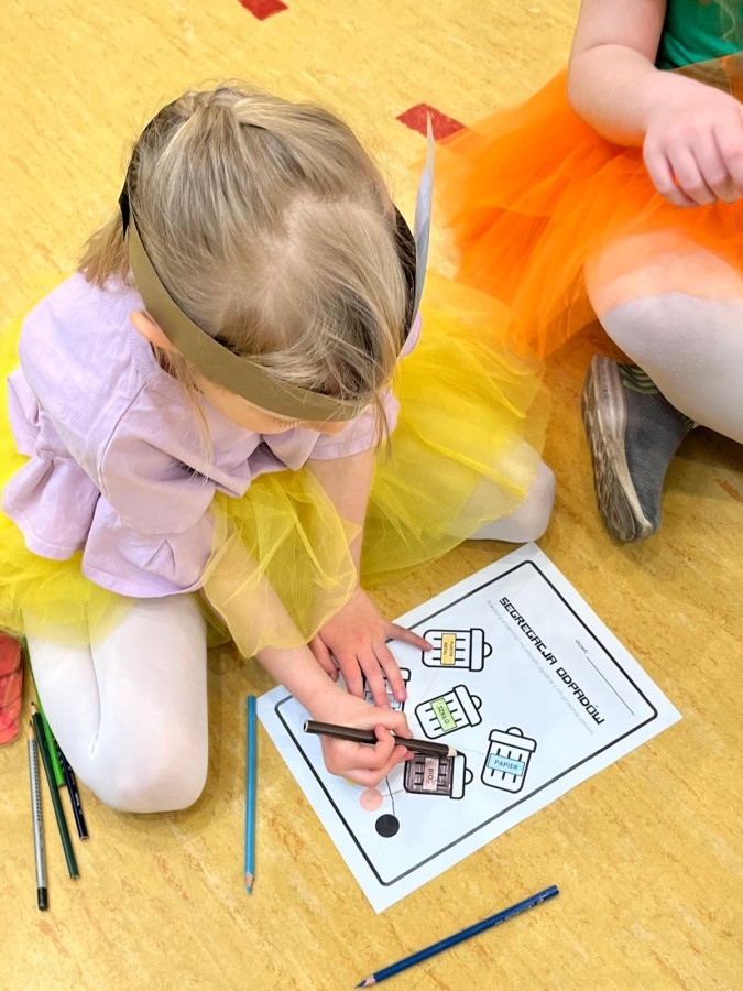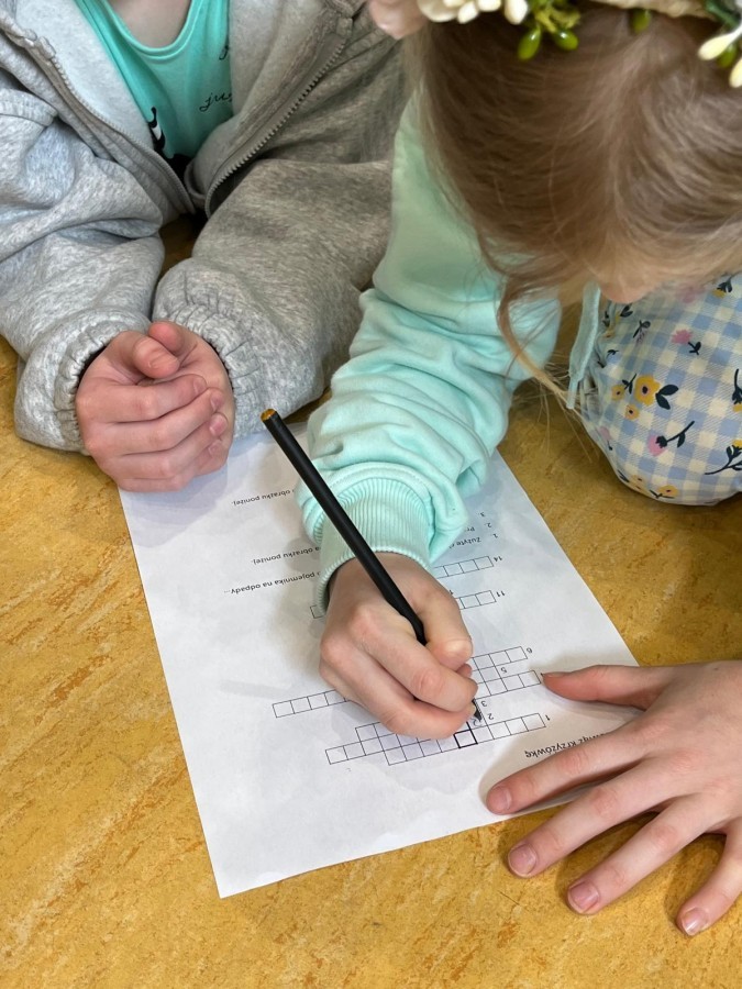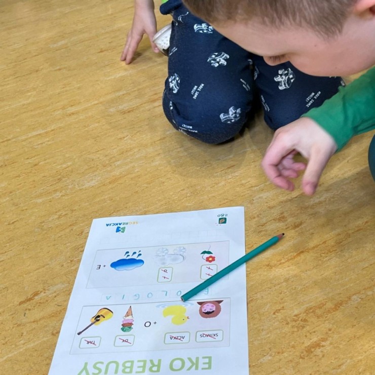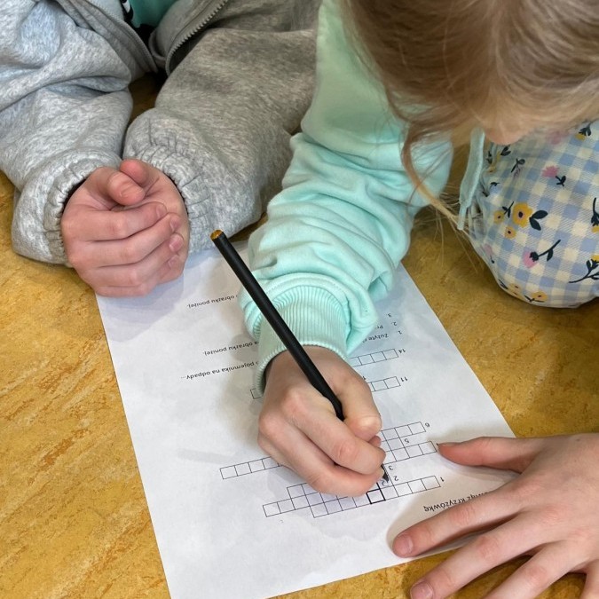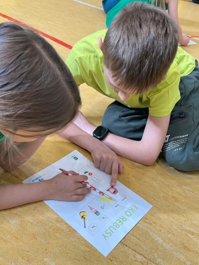 Przygotowano stanowiska z amigłówkami, rebusami i krzyżówkami dotyczącymi segregacji odpadów i zasad recyklingu.