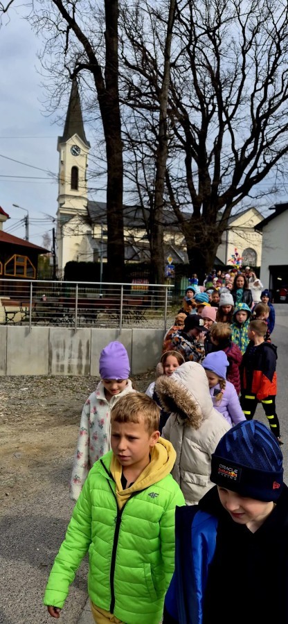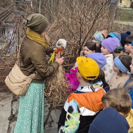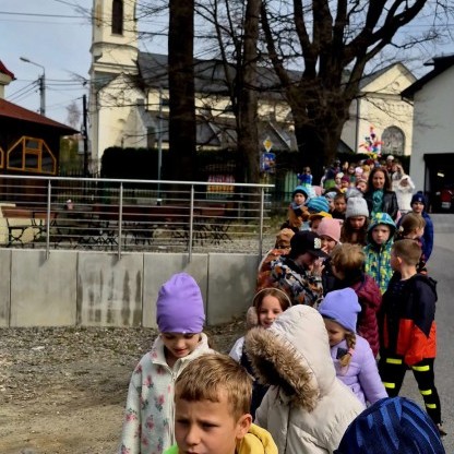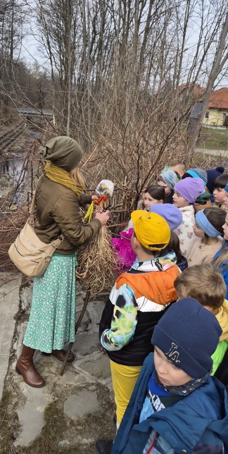 Zorganizowano spacer nad rzekę, podczas którego uczniowie wzięli udział w symbolicznym pożegnaniu zimy.