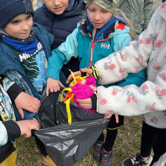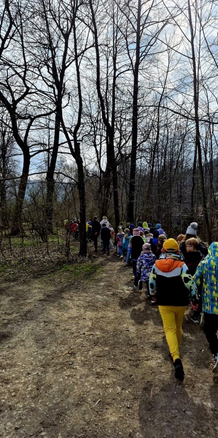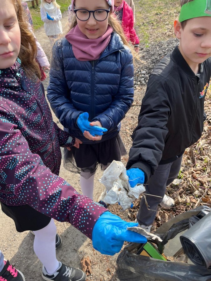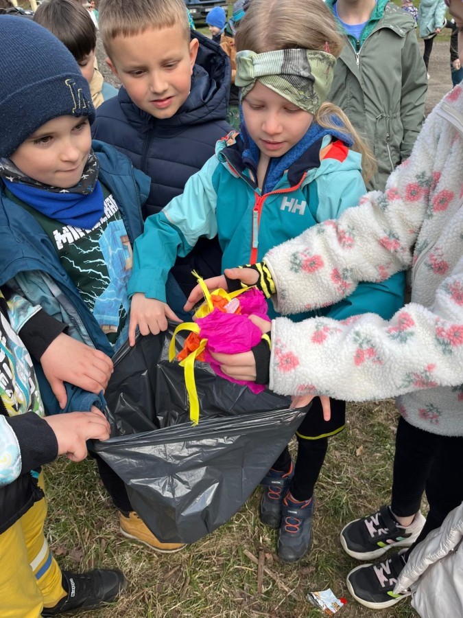 Dodatkowo uczniowie aktywnie zbierali śmieci wzdłuż trasy spaceru, ucząc się, że dbałość o planetę zaczyna się od najbliższego otoczenia.