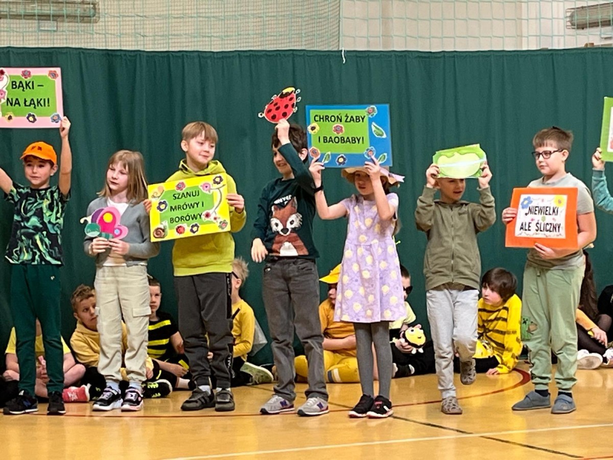 W ramach wydarzenia na sali gimnastycznej odbył się teatrzyk ekologiczny, podczas którego uczniowie zaprezentowali wierszyki o recyklingu i ochronie przyrody. Dzieci przygotowały zielone stroje, tworząc prawdziwą wiosenną łąkę.