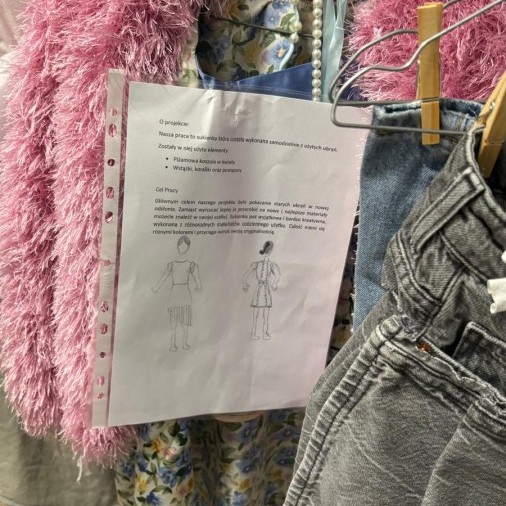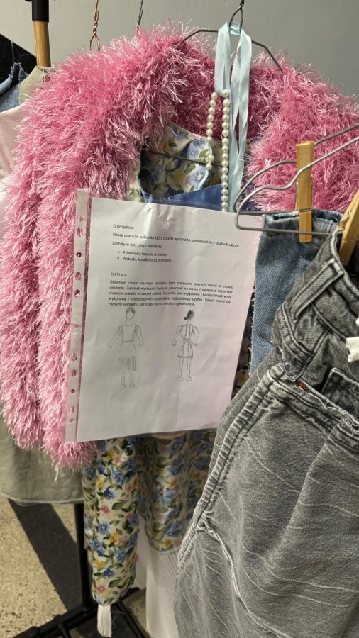 💛 Uczniowie klas 7- 8 zajęli się modą – przetwarzali stare ubrania, tworząc nowe, oryginalne kreacje. Łączenie materiałów, dodatki i odważne pomysły pokazały ich ukryte talenty. Jak powiedziała jedna z uczennic – w swoim projekcie zamierza chodzić na co dzień.