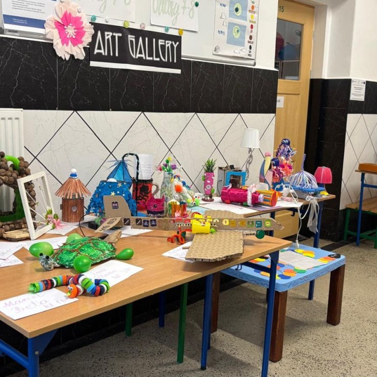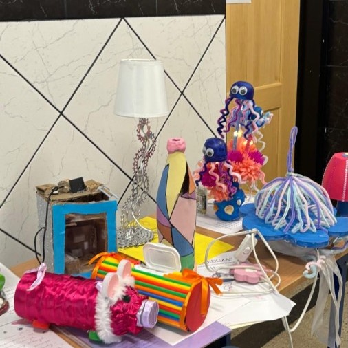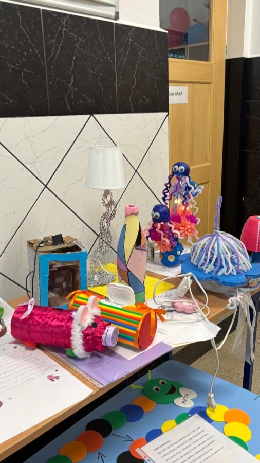 💚 Klasy 4-6 w duchu upcyclingu nadały nowe życie przedmiotom codziennego użytku lub stworzyły coś zupełnie nowego z materiałów z odzysku. Kreatywność dzieci zachwyca – powstały nie tylko artystyczne projekty, ale także działające konstrukcje, w tym samodzielnie wykonana elektronika i systemy audio.