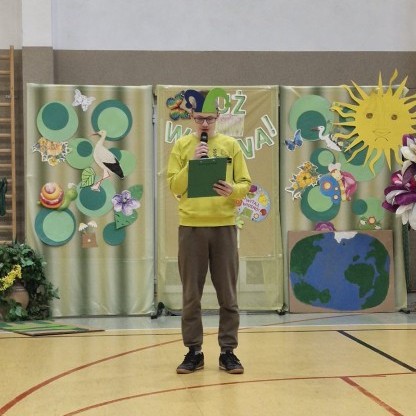 W piątek 27 marca 2026 r. w ramach realizacji zadań projektu "Bielsko Biała chroni klimat" odbyły się imprezy ekologiczne pod wspólnym tytułem "Z miłości do natury, przyrody, Ziemi". Uczniowie klas 4 - 8 w pięknej inscenizacji, poprzez śpiew, taniec, poezję uświetnili święto naszej planety. W ramach Festiwalu Ekologicznych Pomysłów zorganizowano wystawę prac uczniów nadających przedmiotom, kreacjom drugie życie. Recykling ma sens ipodoba się młodzieży! Uczniowie zaprezentowali swoje wyjątkowe prace powstałe na lekcjach plastyki i techniki, które wezmą udział w indywidualnym konkursie „Szanuj energię, chroń klimat” – 16 edycja 2025/2026.