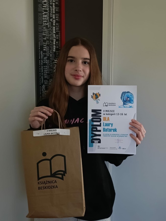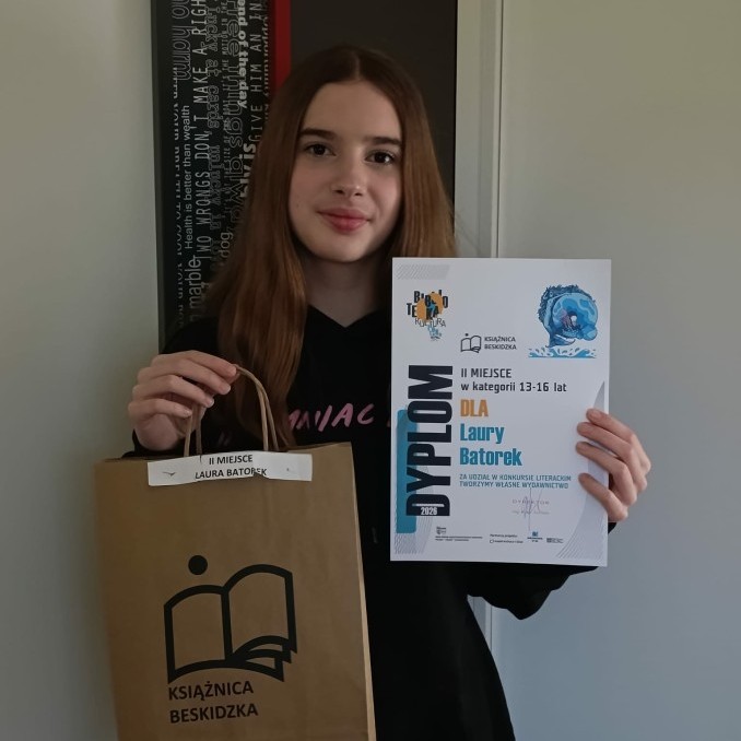 9 kwietnia 2026 r. uczennice naszej szkoły - Laura Batorek, Magdalena Miłkowska oraz Zuzanna Knichał i Emilia Piekielska - wzięły udział w uroczystym rozstrzygnięciu konkursu "Tworzymy Własne Wydawnictwo" organizowanego przez Książnicę Beskidzką. Była to krajowa edycja konkursu, który wymaga od uczestników nie tylko talentu literackiego, ale i plastycznego oraz umiejętności edytorskich i introligatorskich.