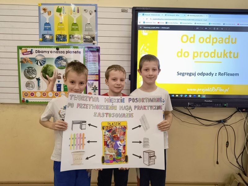 W klasach 1 - 3 był to plakat na temat właściwego postępowania z odpadami, ze szczególnym