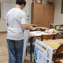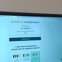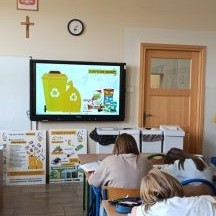 W ramach projektu "Segreguj z Reflexem" nasza szkoła w grudniu otrzymała Komplet kartonowych pojemników (80 l.) do selektywnej zbiórki odpadów (papier, plastik, szkło, bio) oraz tablice edukacyjne 3 szt. z pcv (60x84 cm) dotyczące segregacji. Uczniowie klas 7 i 8 z tymi pomocami poprowadzili zajęcia dla klas 4-6 na temat recyklingu.