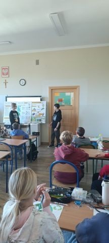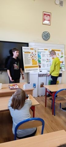 Uczniowie klas 4-6 na podstawie uzyskanej wiedzy rozwiązywali quizy oraz wykonali plakaty.