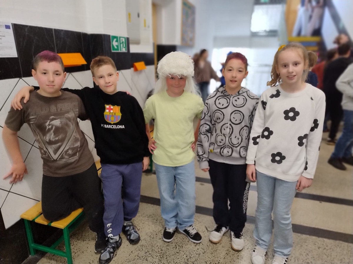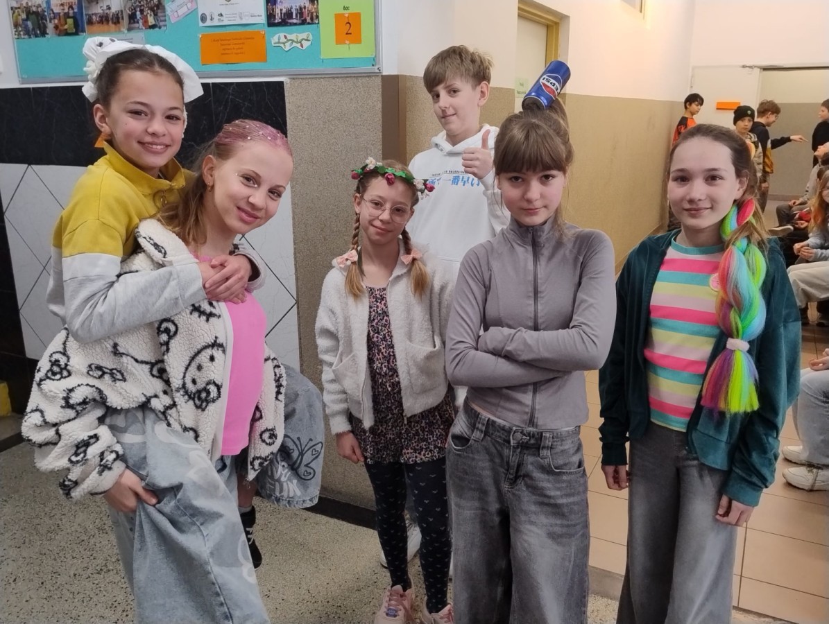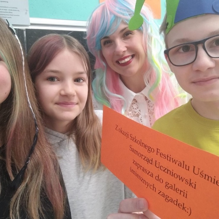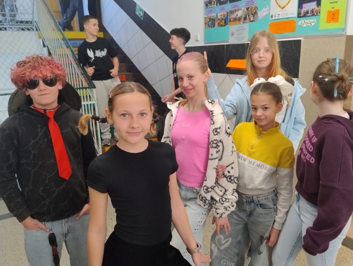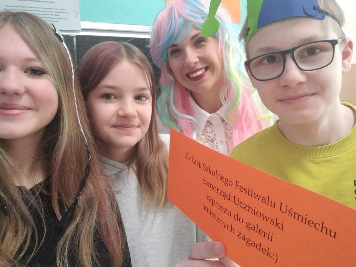 23 kwietnia 2026 r. Samorząd Uczniowski, nawiązując do primaaprilisowej tradycji, zorganizował Szkolny Festiwal Uśmiechu. Na ścianach pojawiły się kartki z zabawnymi zagadkami, np. ,,Czego szuka kościotrup w piaskownicy? Łopatki” albo ,Ile zarabia mechanik samochodowy? 4 koła” Pytania i zaskakujące odpowiedzi okazały się doskonałą rozrywką i świetną alternatywą na spędzanie przerw! W ramach Szkolnego Festiwalu Uśmiechu Samorząd Uczniowski zaprosił do udziału w kolejnej przebierance, tym razem pod hasłem: ,,Dzień szalonej fryzury”. Zadanie polegało na tym, aby przygotować wyjątkową stylizację włosów lub nietypowe, niebanalne, oryginalne nakrycie głowy. Każdy, kto podjął wyzwanie i swoją fryzurą zaskoczył innych, wywołując uśmiech lub zdziwienie, otrzymał uwagę pozytywną i 3 punkty. Najciekawsze stylizacje zostały sfotografowane, więc zapraszamy do odwiedzenia fotogalerii.