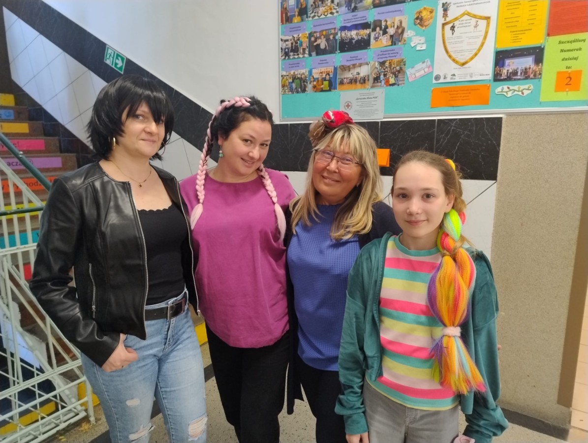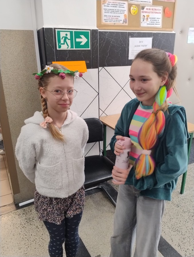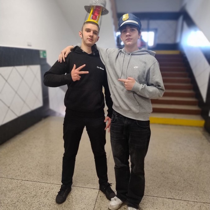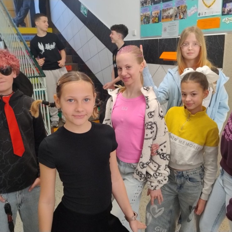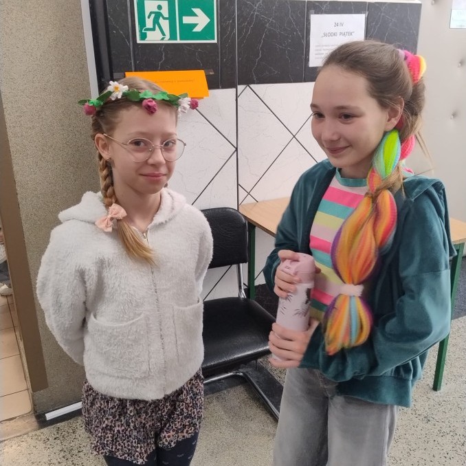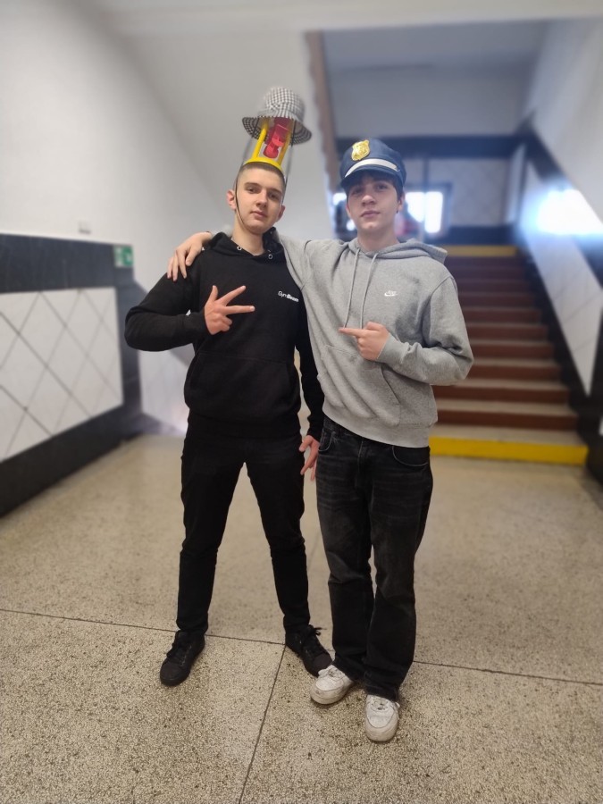 23 kwietnia 2026 r. Samorząd Uczniowski, nawiązując do primaaprilisowej tradycji, zorganizował Szkolny Festiwal Uśmiechu. Na ścianach pojawiły się kartki z zabawnymi zagadkami, np. ,,Czego szuka kościotrup w piaskownicy? Łopatki” albo ,Ile zarabia mechanik samochodowy? 4 koła” Pytania i zaskakujące odpowiedzi okazały się doskonałą rozrywką i świetną alternatywą na spędzanie przerw! W ramach Szkolnego Festiwalu Uśmiechu Samorząd Uczniowski zaprosił do udziału w kolejnej przebierance, tym razem pod hasłem: ,,Dzień szalonej fryzury”. Zadanie polegało na tym, aby przygotować wyjątkową stylizację włosów lub nietypowe, niebanalne, oryginalne nakrycie głowy. Każdy, kto podjął wyzwanie i swoją fryzurą zaskoczył innych, wywołując uśmiech lub zdziwienie, otrzymał uwagę pozytywną i 3 punkty. Najciekawsze stylizacje zostały sfotografowane, więc zapraszamy do odwiedzenia fotogalerii.