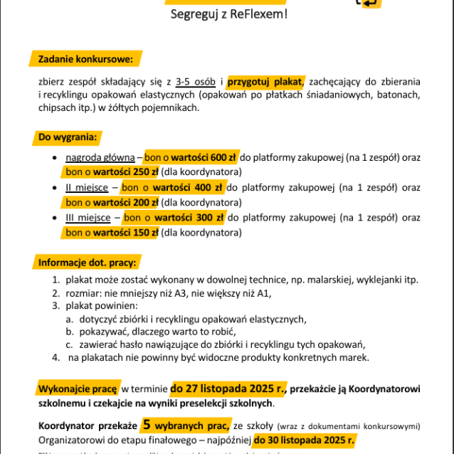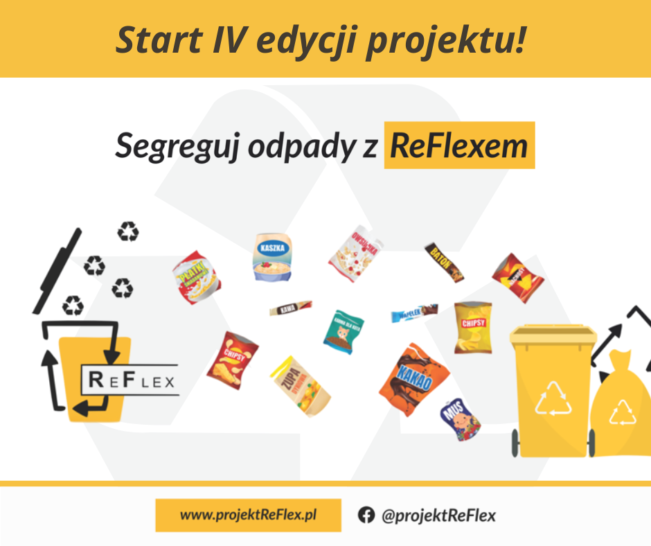 z radością informujemy, że nasza szkoła dołączyła do projektu edukacyjnego „Segreguj z ReFlexem”. Jego celem jest nauka prawidłowej segregacji odpadów po produktach, których używamy na co dzień (np. po chrupkach, płatkach śniadaniowych czy cukierkach) i pokazanie, jak można dać im „drugie życie”.